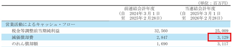 ↓ 連結キャッシュ・フロー計算書の上から2行目に「減価償却費」はあります。