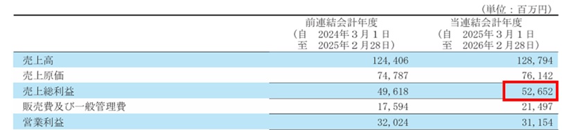 ↓ 連結損益計算書の上から3行目の「売上総利益」が粗利です。